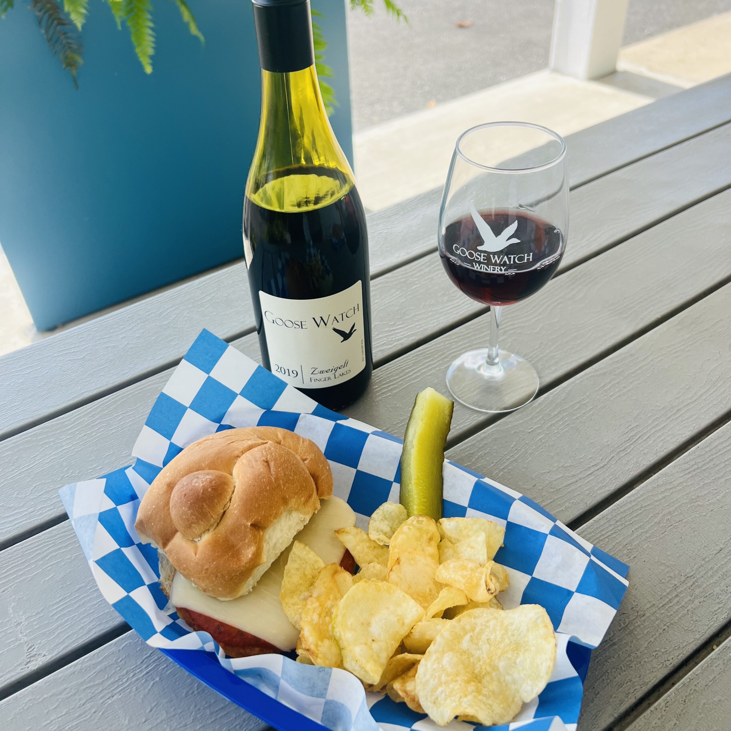 Enjoy a selection of light bites and artisan sandwiches, thoughtfully prepared and delivered right to your table. Whether you’re pairing with a glass of wine or a cold beer, our menu is designed to complement your experience—fresh, flavorful, and served quickly so you can sit back, relax, and enjoy the view. Service is available in both our tasting room and brewery.