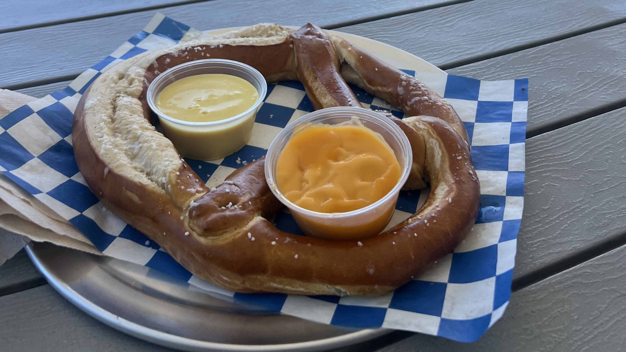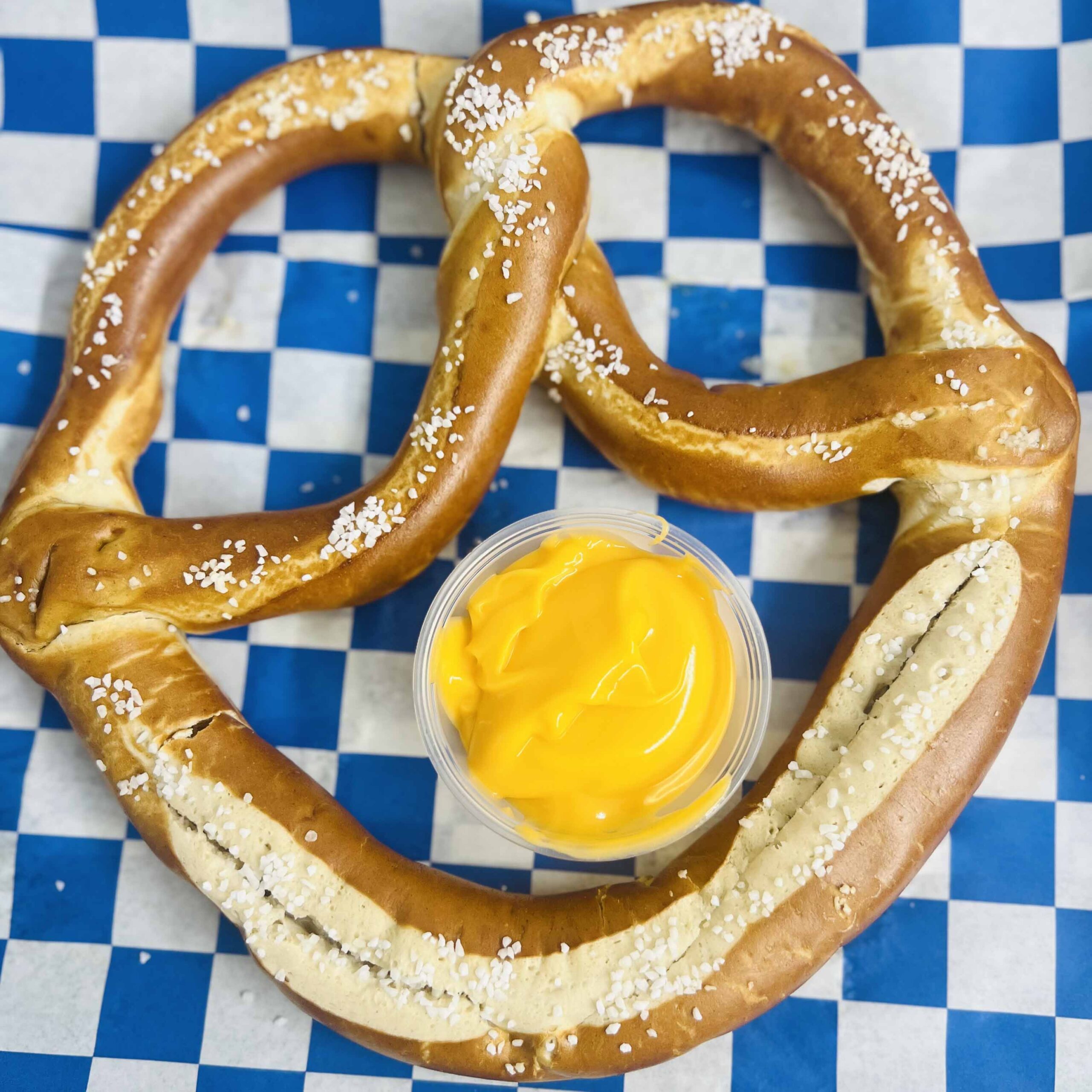 Extra-large hot pretzel served warm with a choice of beer cheese or mustard.